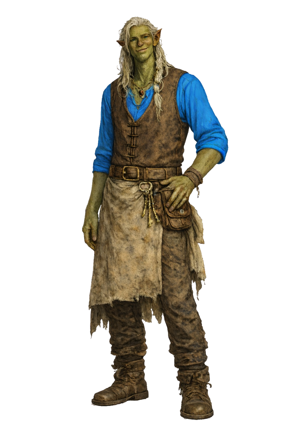 Braj was sold as into servitude in his teens after Orcs invaded his village. Eventually he was sold to Bovit Roshan who opened Kuridu,Stews and Brews. Braj met and married his true love Jaria and had his daughter Ralya. When Jaria died, Braj saw the pain in Braj as well as his strength when around his daughter and his heart changed. Eventually Bovit freed Braj and his daughter and asked them to work for him with the understanding that they would inherit the business upon his death.LocationKuriduStatusAliveSpeciesTroll / Cloud ElfGenderMaleAge36Height6'5"Weight160 lb.EyesLight GreenSkinOlive GreenLanguagesElvish, Trollsk