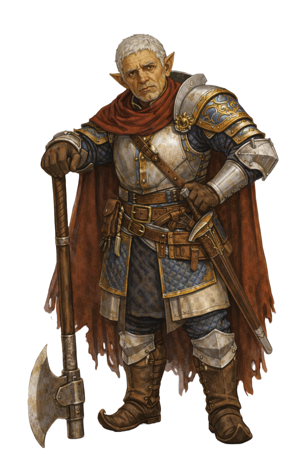 Once a soldier in the imperial army of :region,Alathel:, Paw Paw retired at the age of 98. He came to :settlement,Kuridu: for a simpler life and runs his weapon store selling fancy weapons to the well off. Paw Paw has an acerbic attitude toward those he believes cannot afford his wares but is kind to those he deems worthy. While it is certain that he has a first name, no one knows what it is. He is called Paw Paw in a sarcastic way due to his poor attitude to most people.StatusAliveSpeciesCloud Elf / Cloud ElfGenderMaleAge104Height6'8"Weight150 lb.EyesHazelSkinTanLanguagesElvish