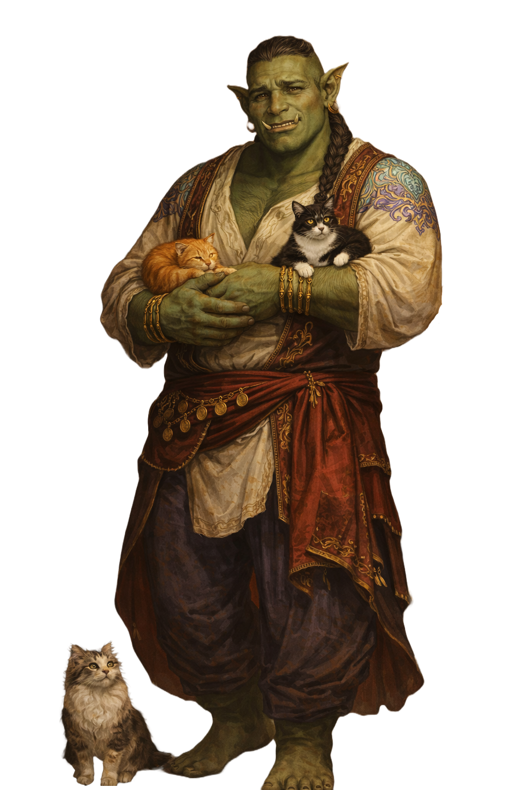 Additionally, he performs dances in accompaniment with Aste.StatusAliveSpeciesOrc / Cloud ElfGenderMaleAge46Height8'2"Weight320 lb.EyesCharcoal graySkinOlive GreenLanguagesOgund, Low Elvish