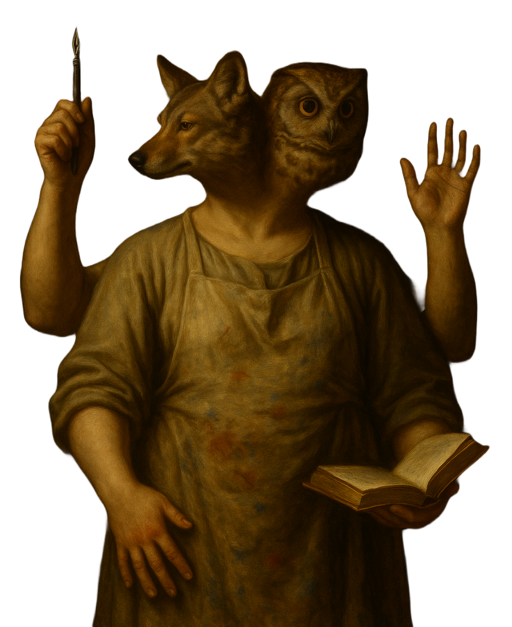 While there are no formal holidays, they are celebrated and random quickly planned events. Depictions of Ijul are of a humanoid creature with 4 arms, 2 heads (one of a coyote and the other an owl). They have a heavy androgenous body and six fingers on their lower left hand. They wear artists clothes and carry a pen in one hand and a book in the other.